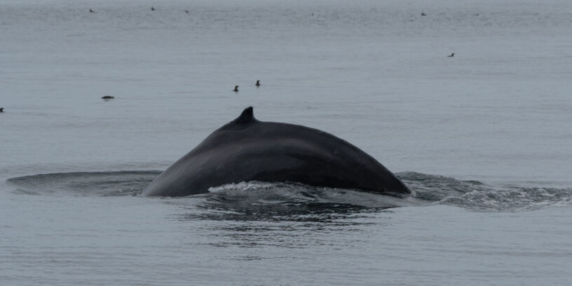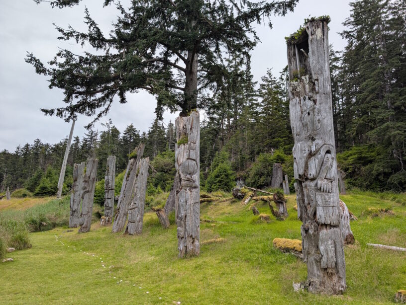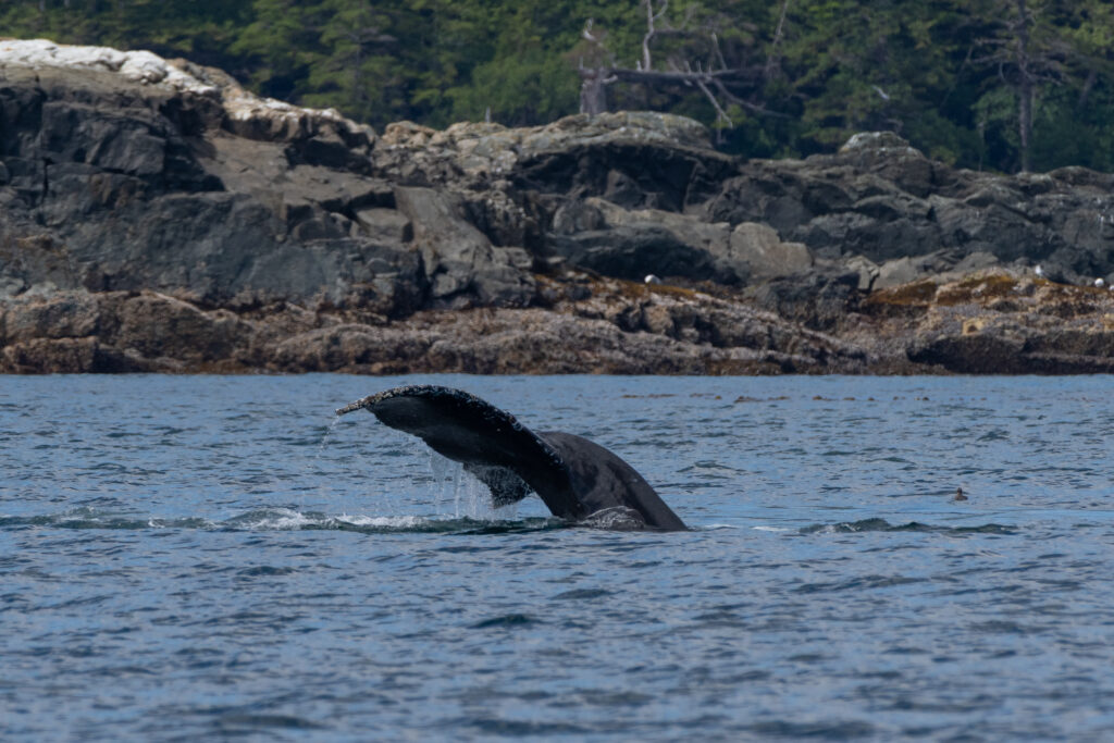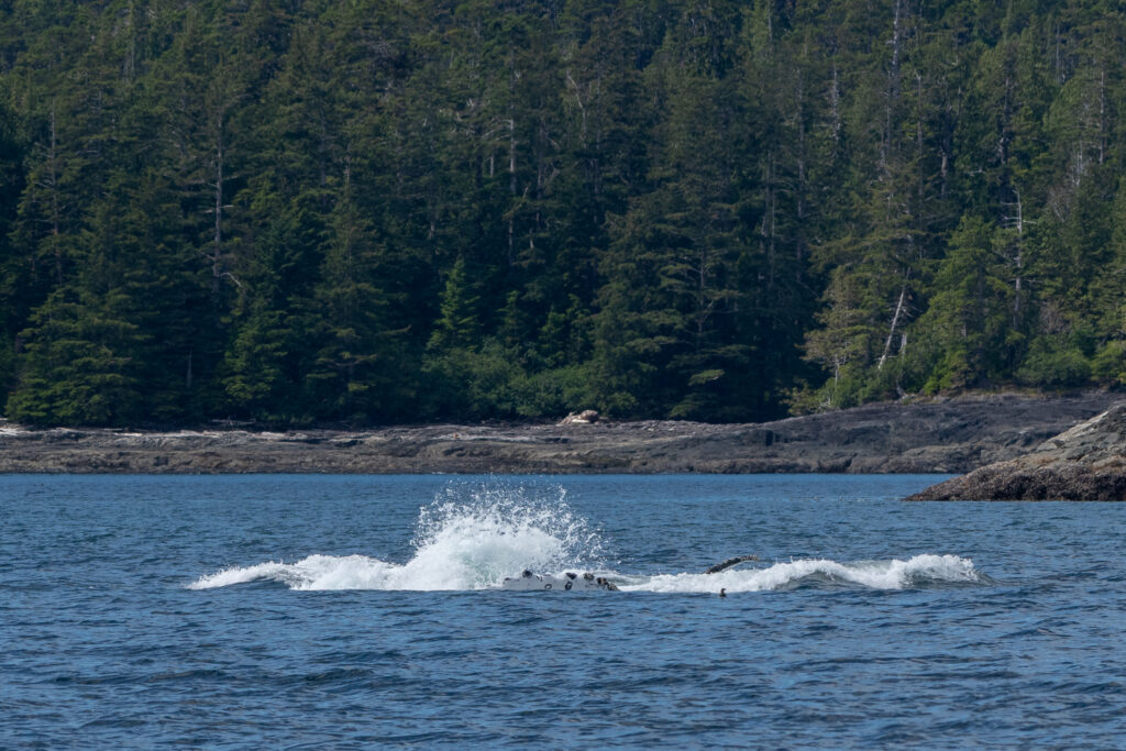 With the weather looking promising for the afternoon, in the late morning of Saturday the 26th we pulled anchor to head past Rose Harbour to SG̱ang Gwaay. We saw more humpback whales on the way, luckily none quite as close as the previous day. The areas to the east of and west of the Houston Stewart Channel, the body of water separating the southern end of Moresby Island and Kunghit Island, were full of humpbacks feeding each day we passed through. I’d only ever seen a few humpback whales in the wild (some up in Alaska, the one near Hakai Institute) and suddenly we’re seeing at least five to seven individuals per day!