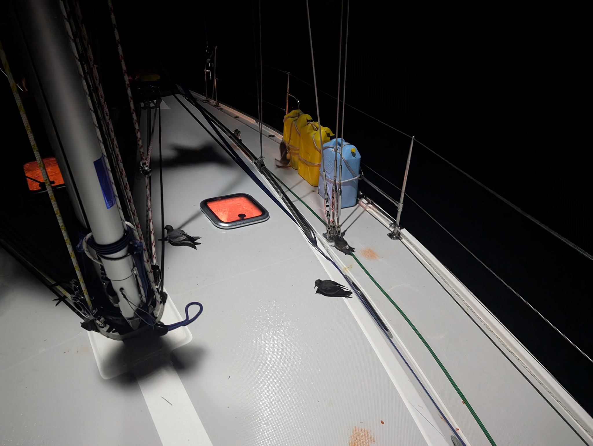 The storm petrels were throwing up?? From dizziness and confusion with your steaming lights? Weird to think of flying birds getting dizzy.