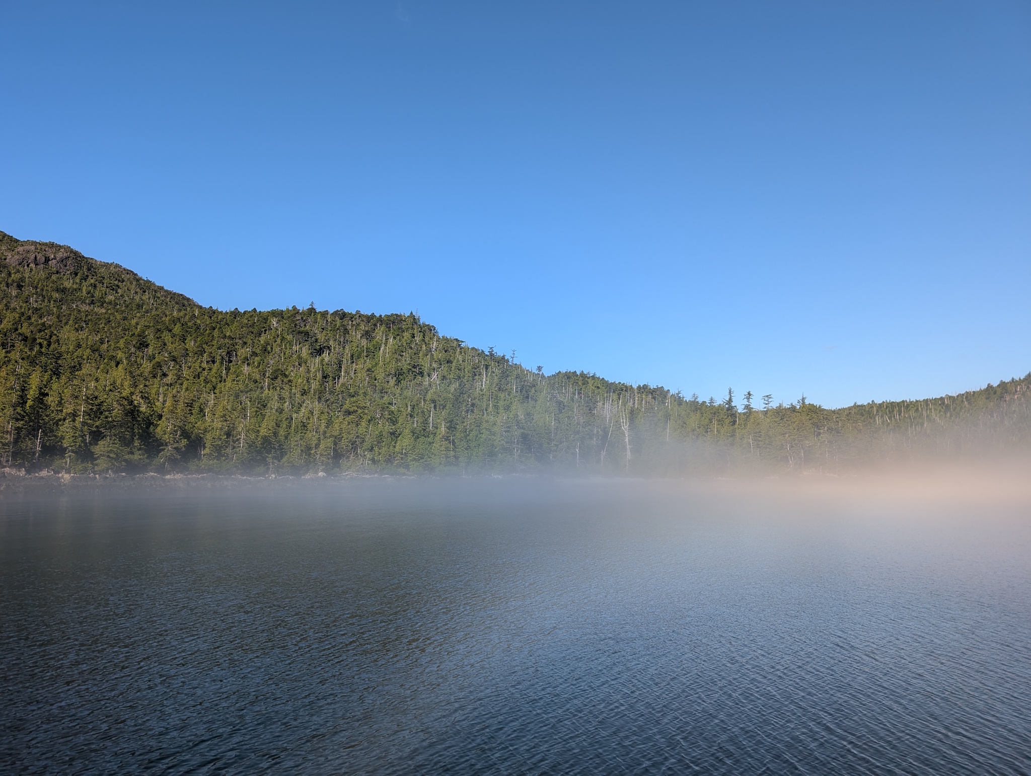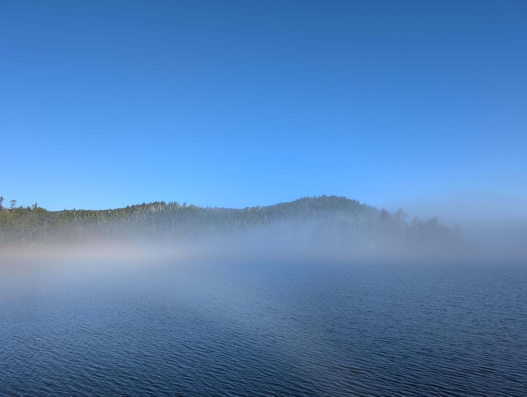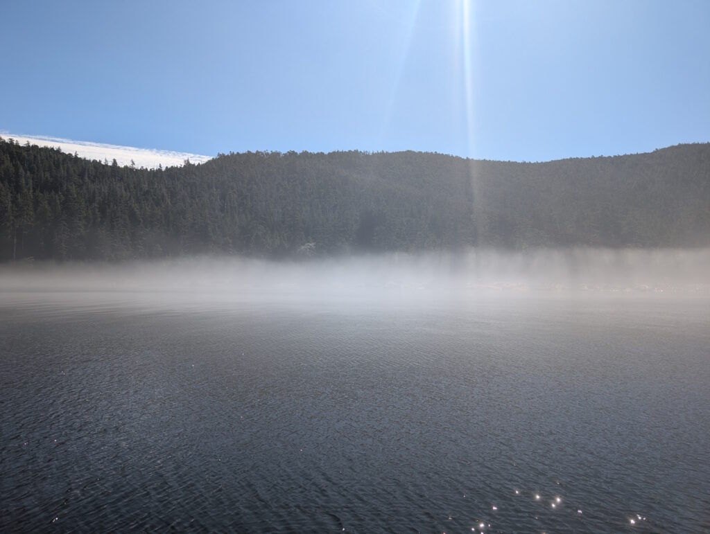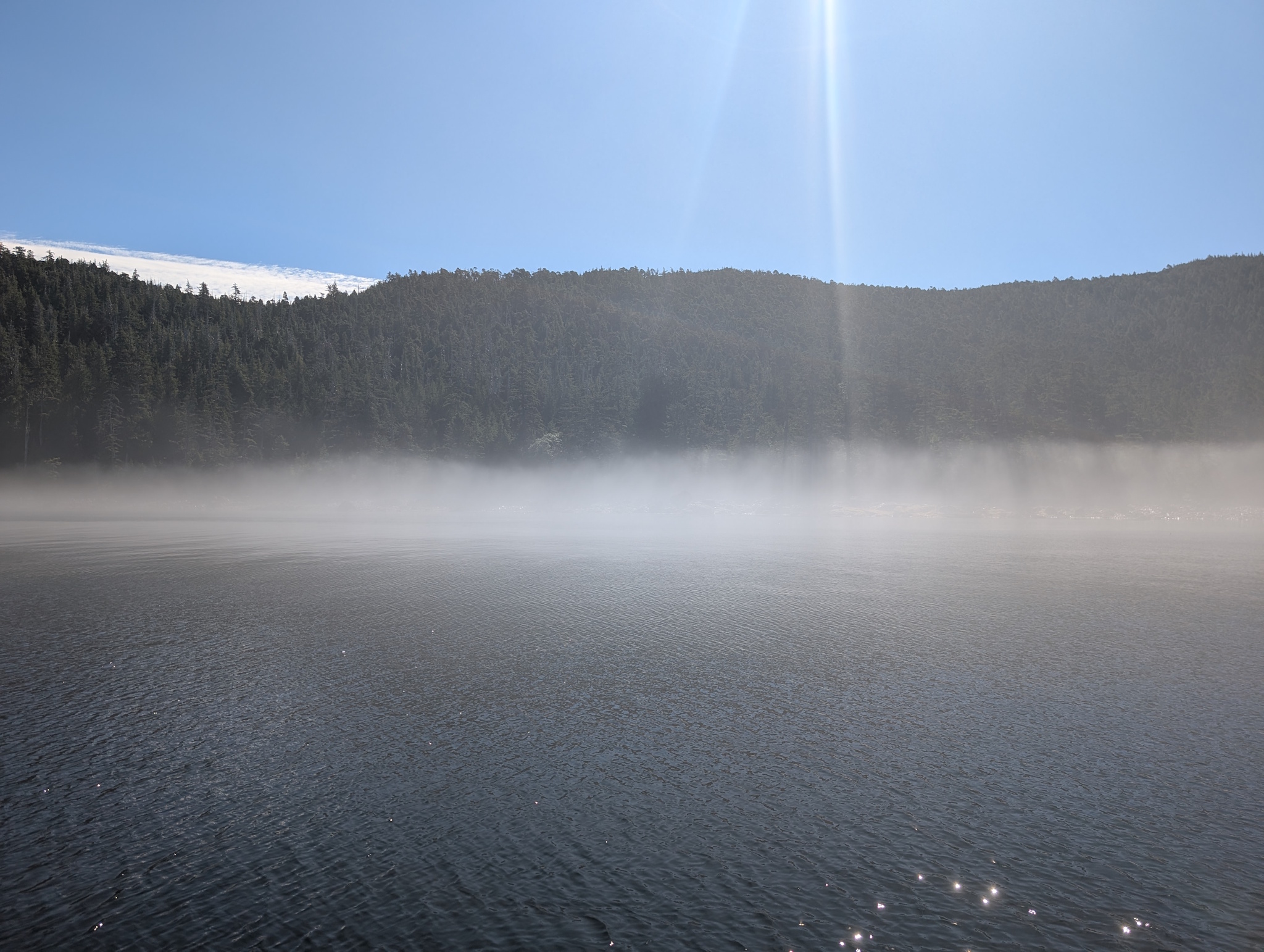 Wednesday the 30th was a sunny turnaround from the previous two days, with only a few fluffy clouds in the distance and blue skies otherwise. Some late morning fog formed over shore in our anchorage before dissipating around noon.