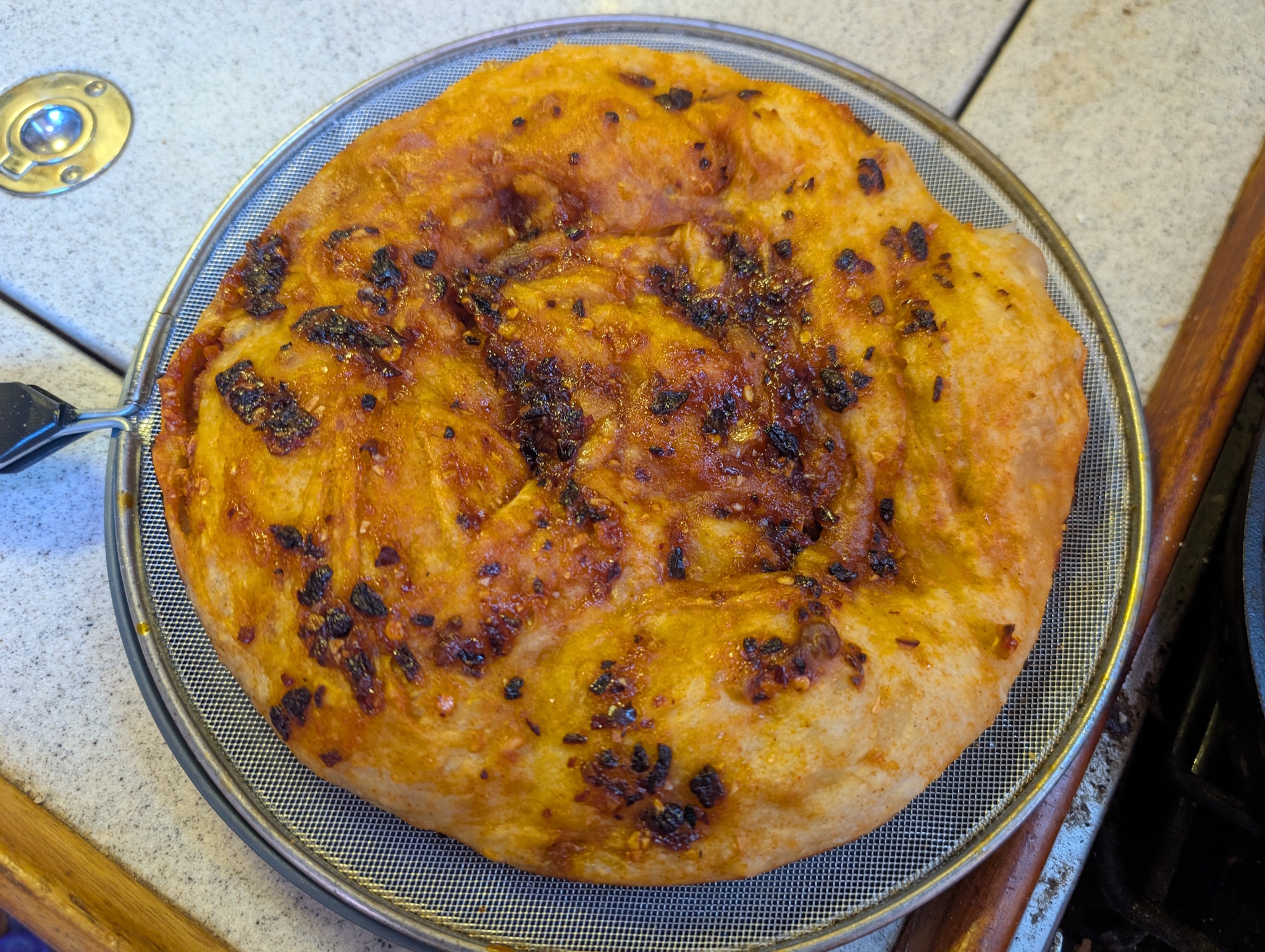 Monday the 28th ended up being very rainy the entire day. We stayed inside, napped, read books in the cockpit with the rain pattering on the canvas, and made good food, including another loaf of bread and some dessert/breakfast focaccia (really like a cinnamon roll focaccia, sorry-not-sorry Italy). Being able to stay cozy and comfortable in such conditions really makes Kestrel a perfect boat for this region.