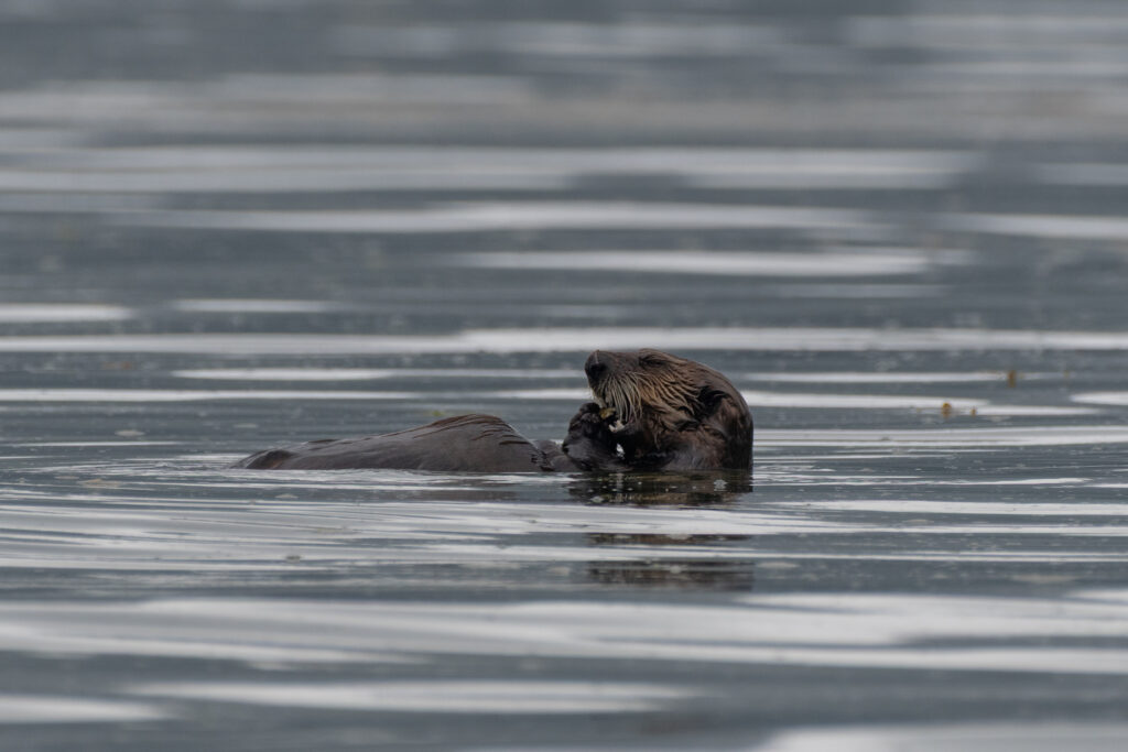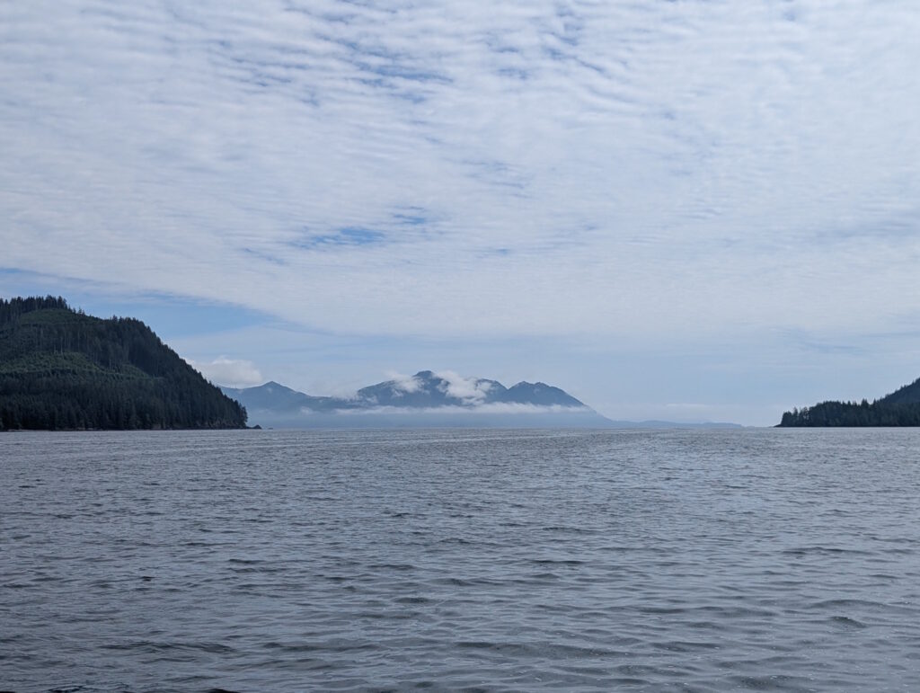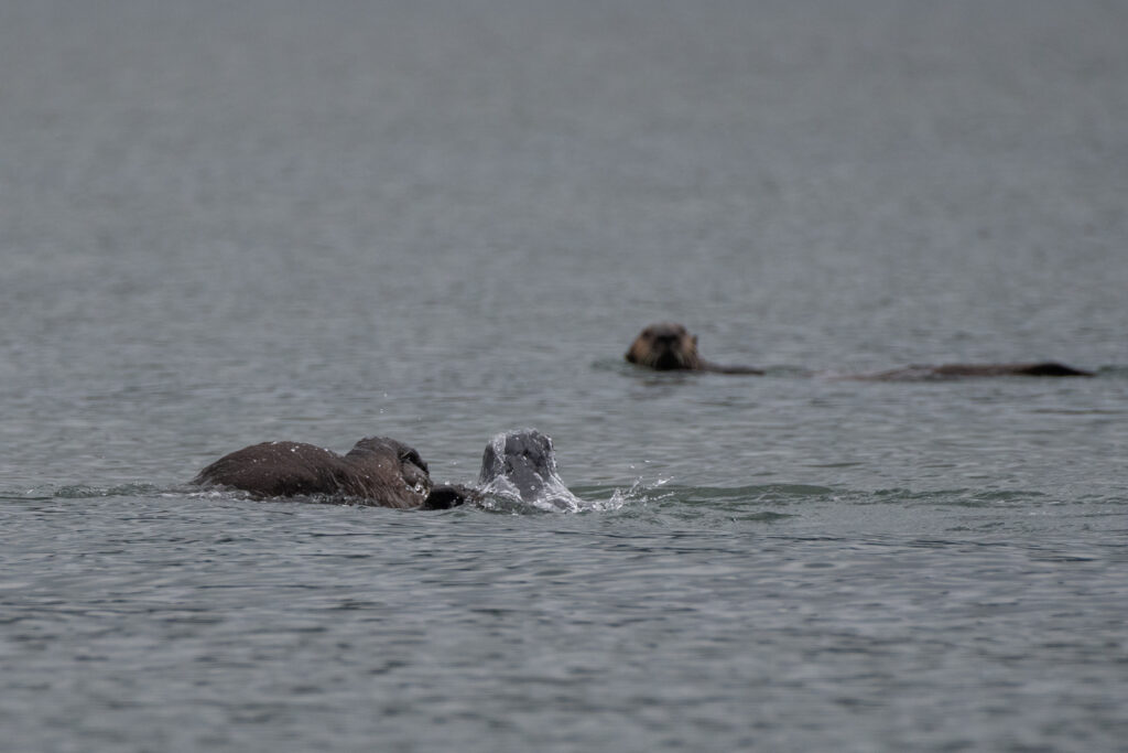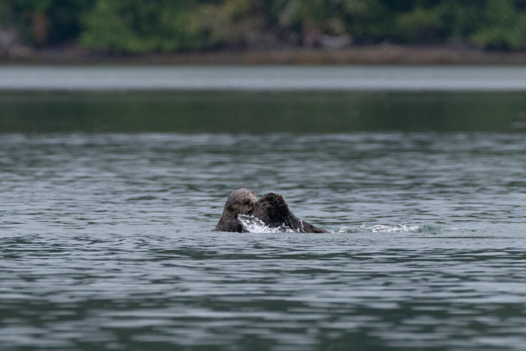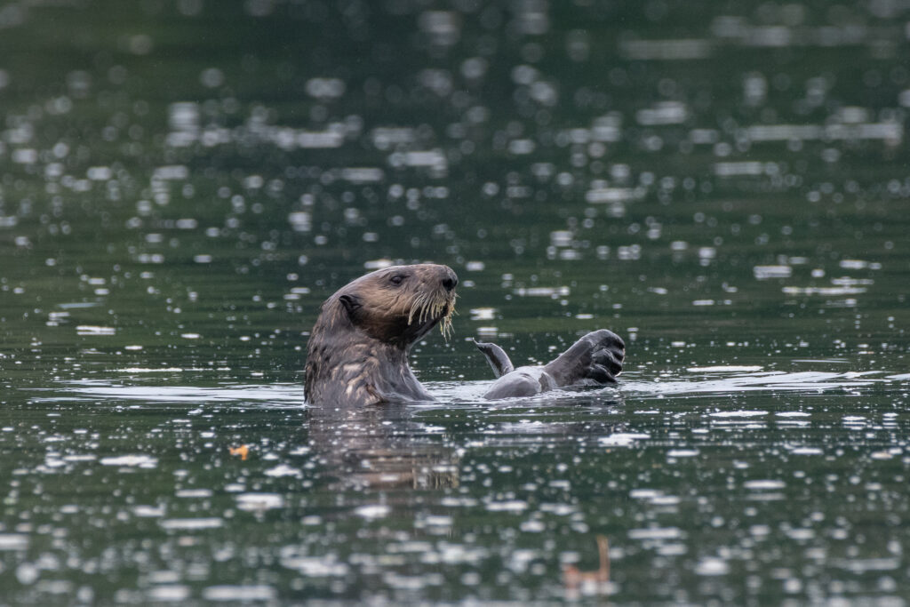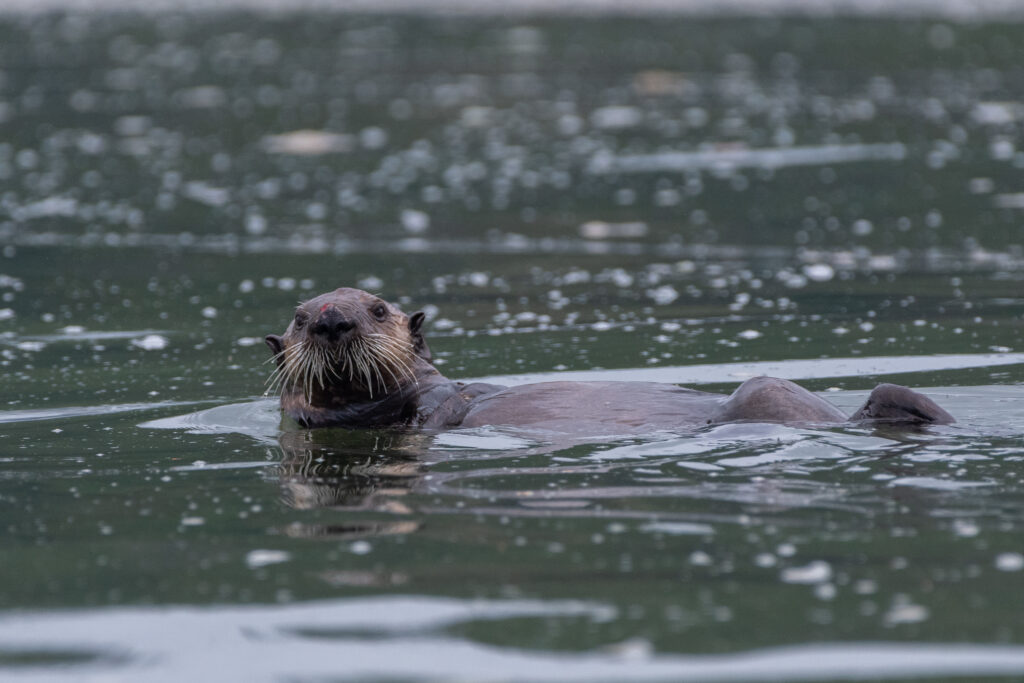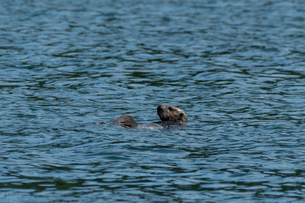 We stayed for two nights at the dock, resting up from the overnight sail, getting what few replacement groceries the General Store offered, and figuring out our next moves and the upcoming weather. Winter Harbour has some very easy sea otter viewing, with rafts of 50+ gathering in the evenings, and some solo otters even coming near the docks. Bald eagles, crows, turkey vultures, and gulls feast on the scraps of fish tossed in the water from the filleting stations on the docks, gathering on the shore at low tide and bickering over the scraps that have washed up. Shorebirds and Belted Kingfishers fly around, calling to each other.