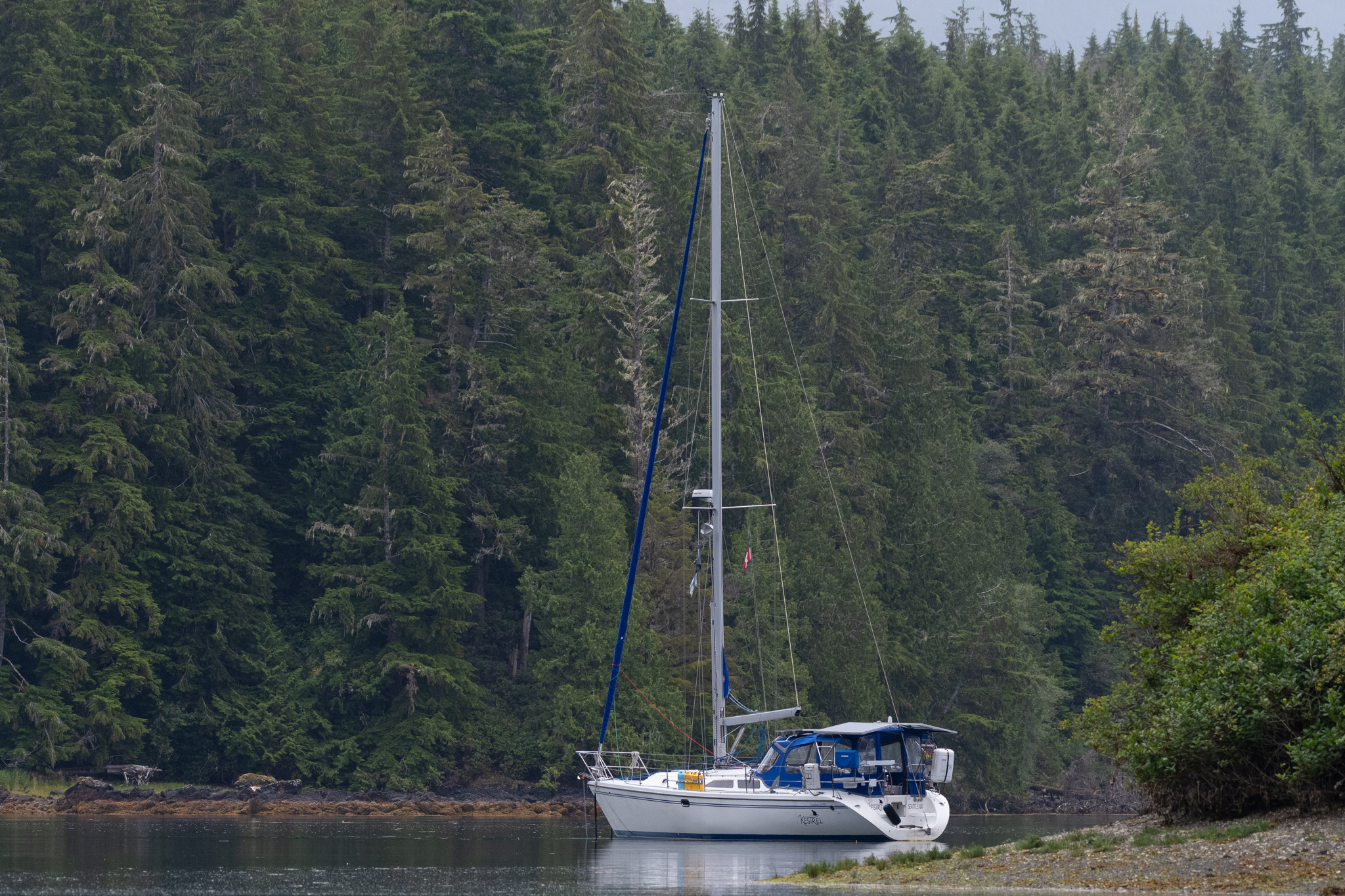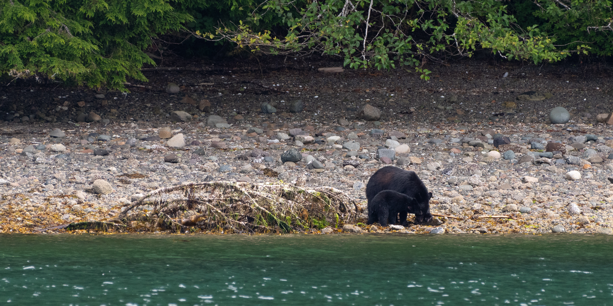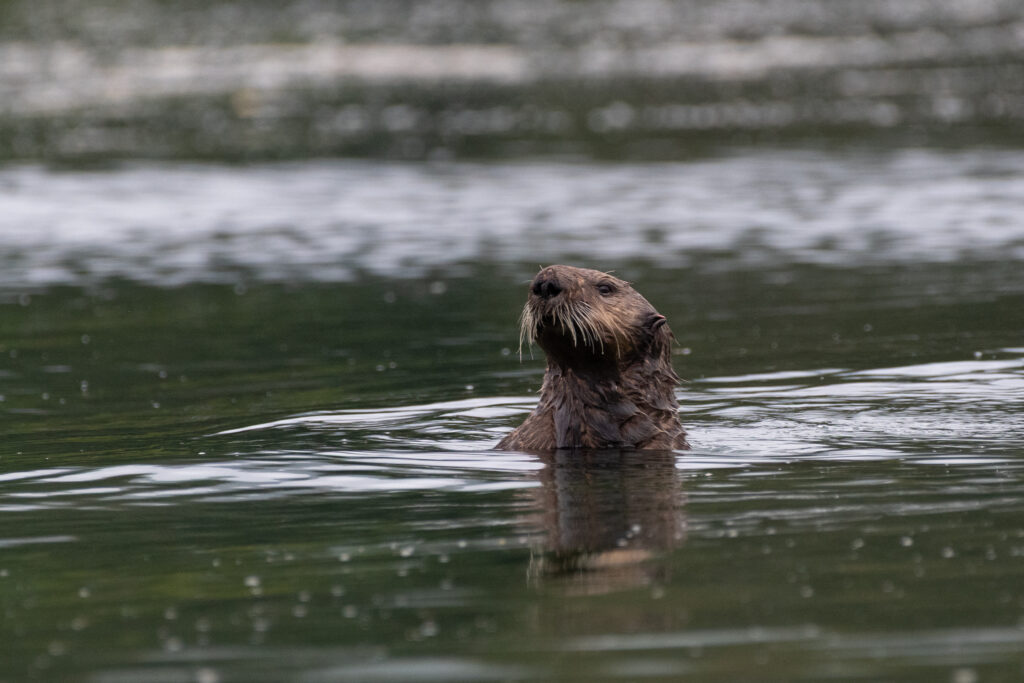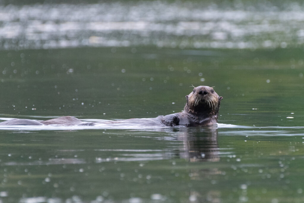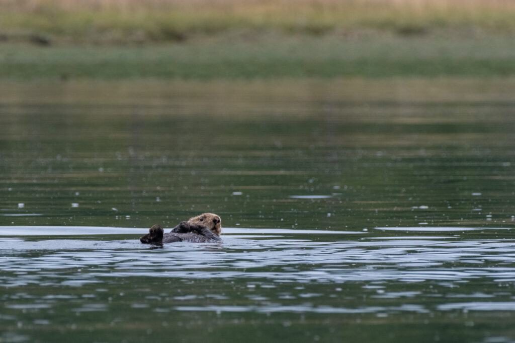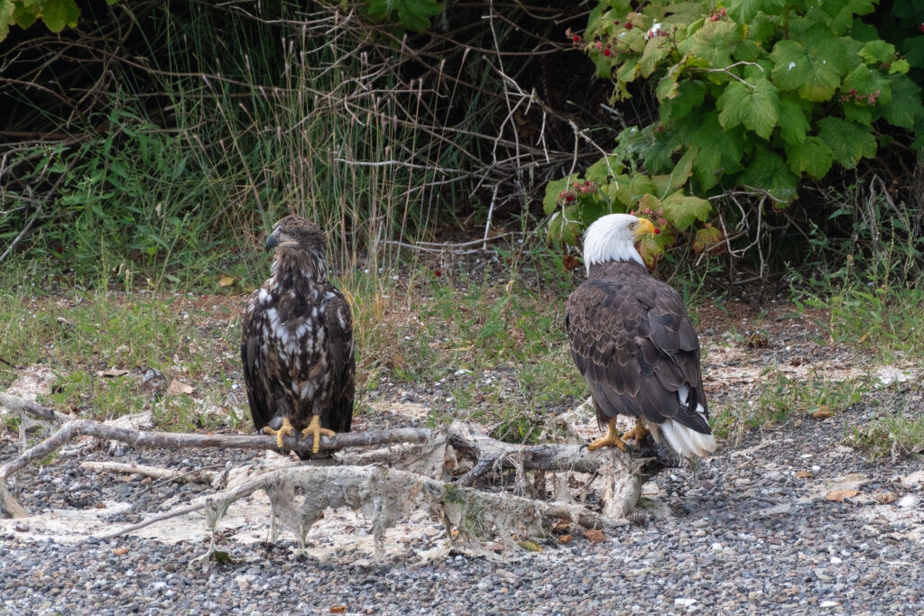 We stayed for two nights at the dock, resting up from the overnight sail, getting what few replacement groceries the General Store offered, and figuring out our next moves and the upcoming weather. Winter Harbour has some very easy sea otter viewing, with rafts of 50+ gathering in the evenings, and some solo otters even coming near the docks. Bald eagles, crows, turkey vultures, and gulls feast on the scraps of fish tossed in the water from the filleting stations on the docks, gathering on the shore at low tide and bickering over the scraps that have washed up. Shorebirds and Belted Kingfishers fly around, calling to each other.