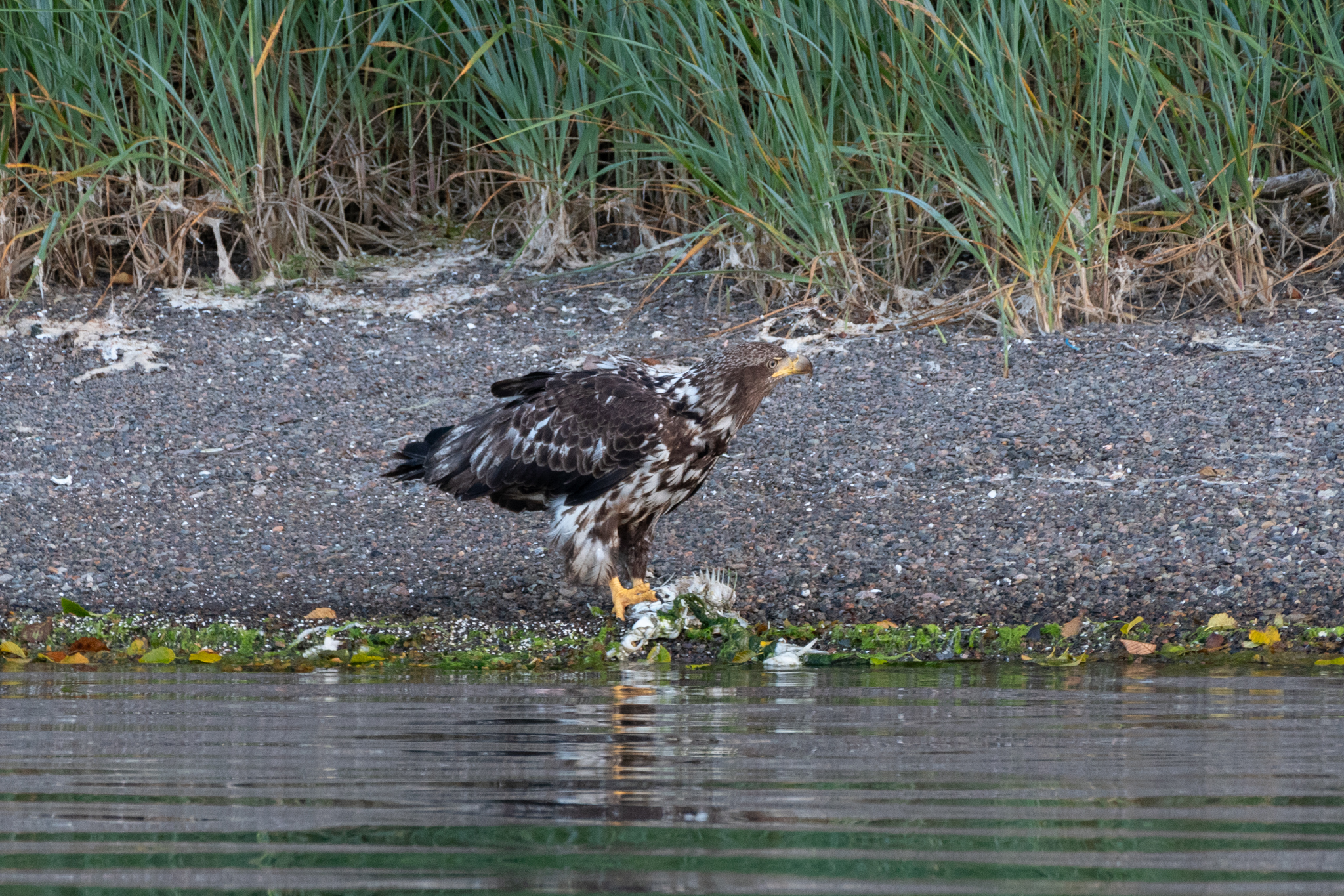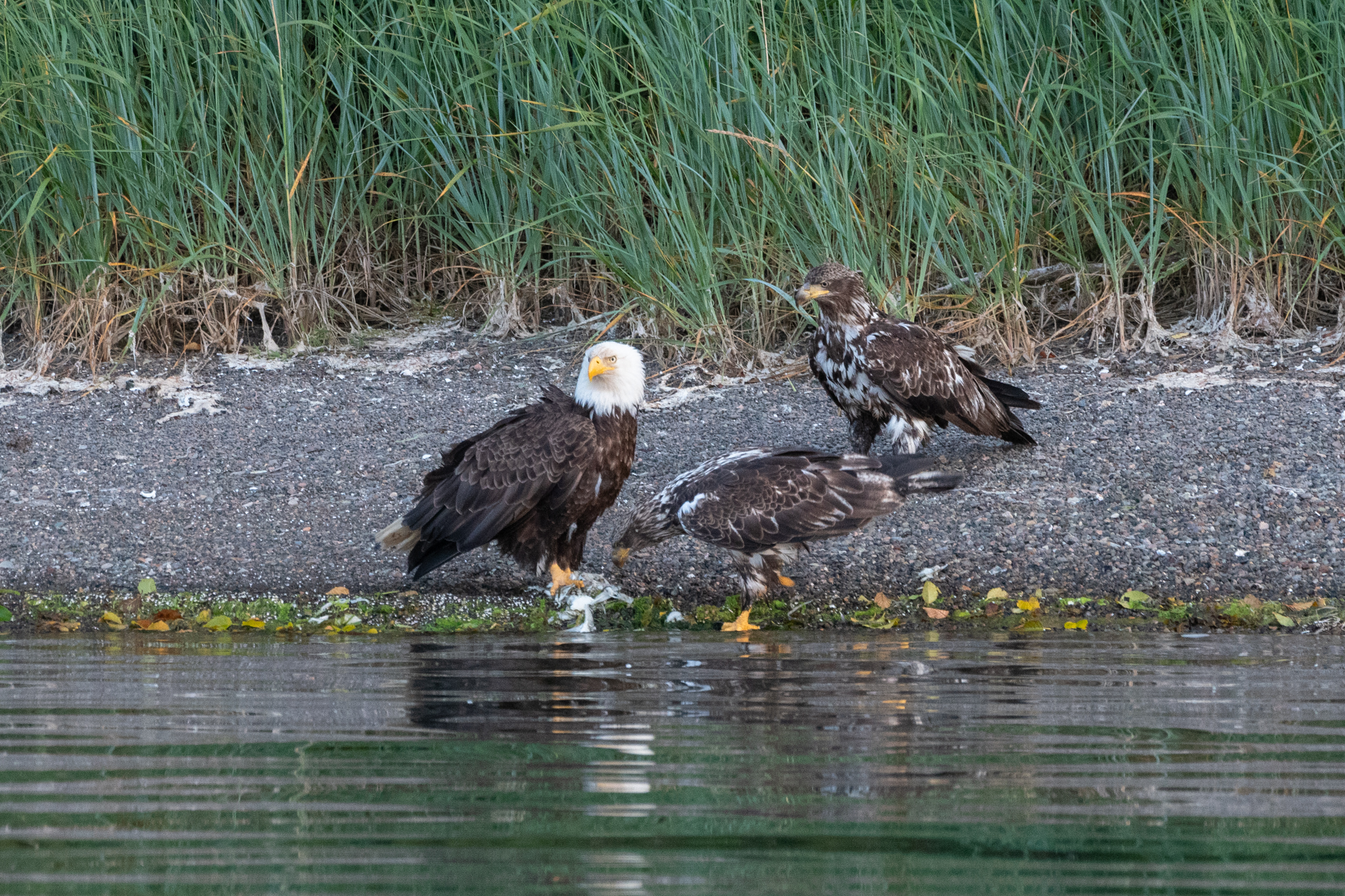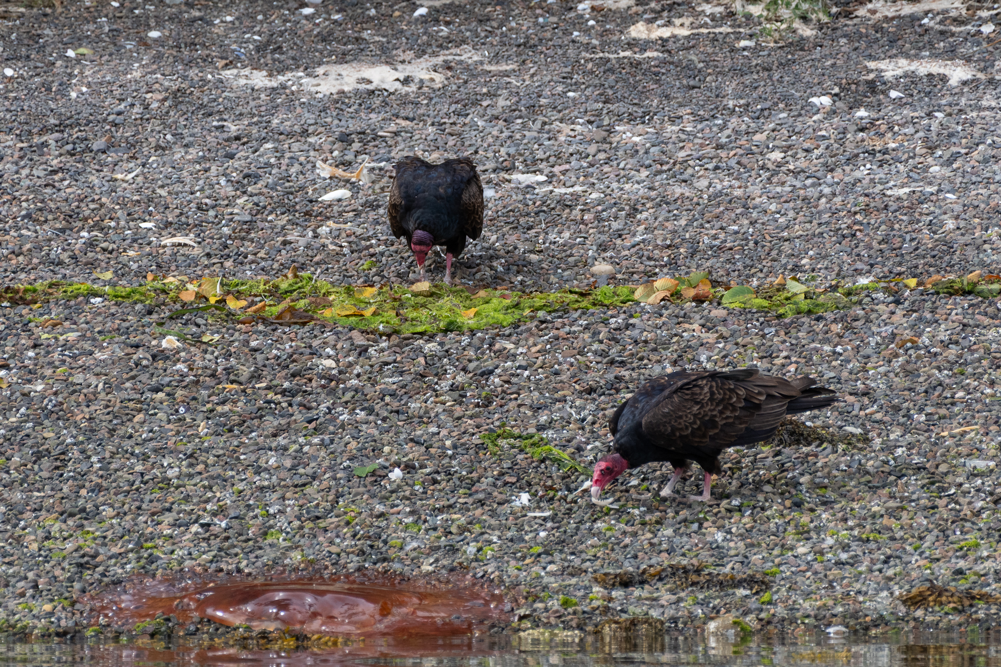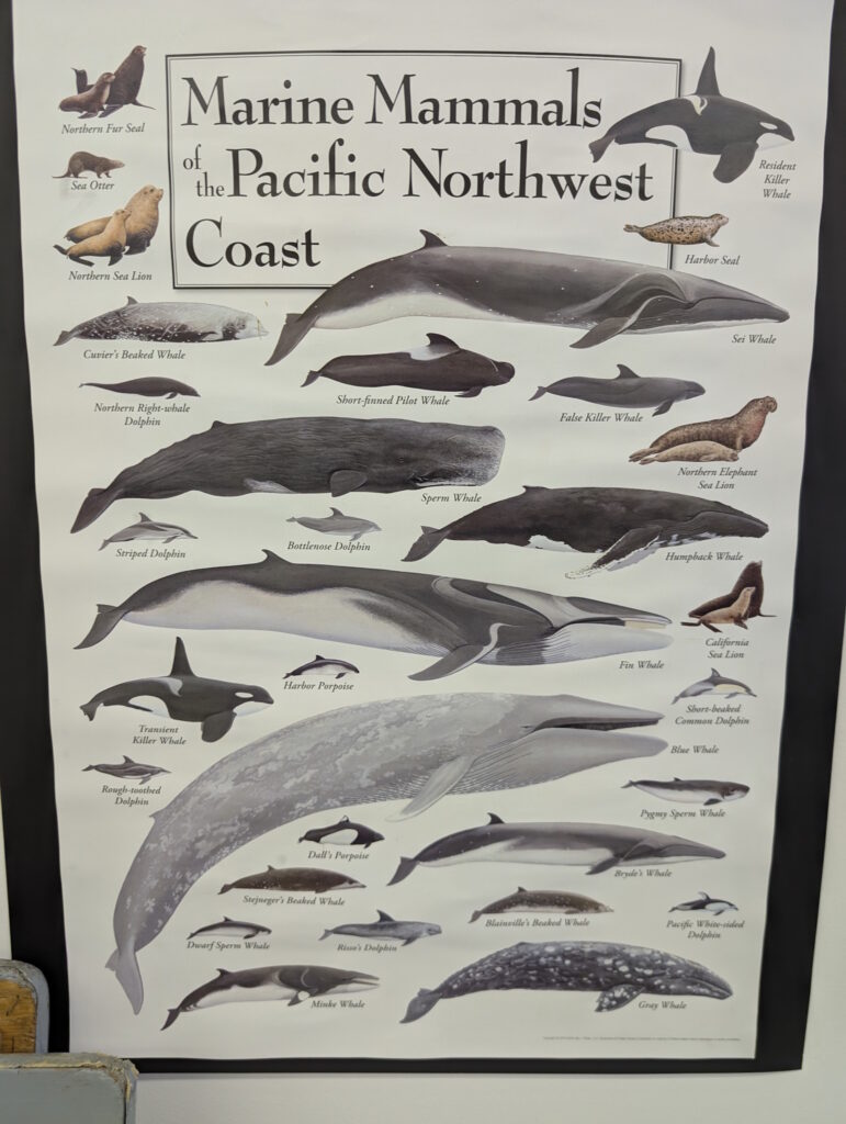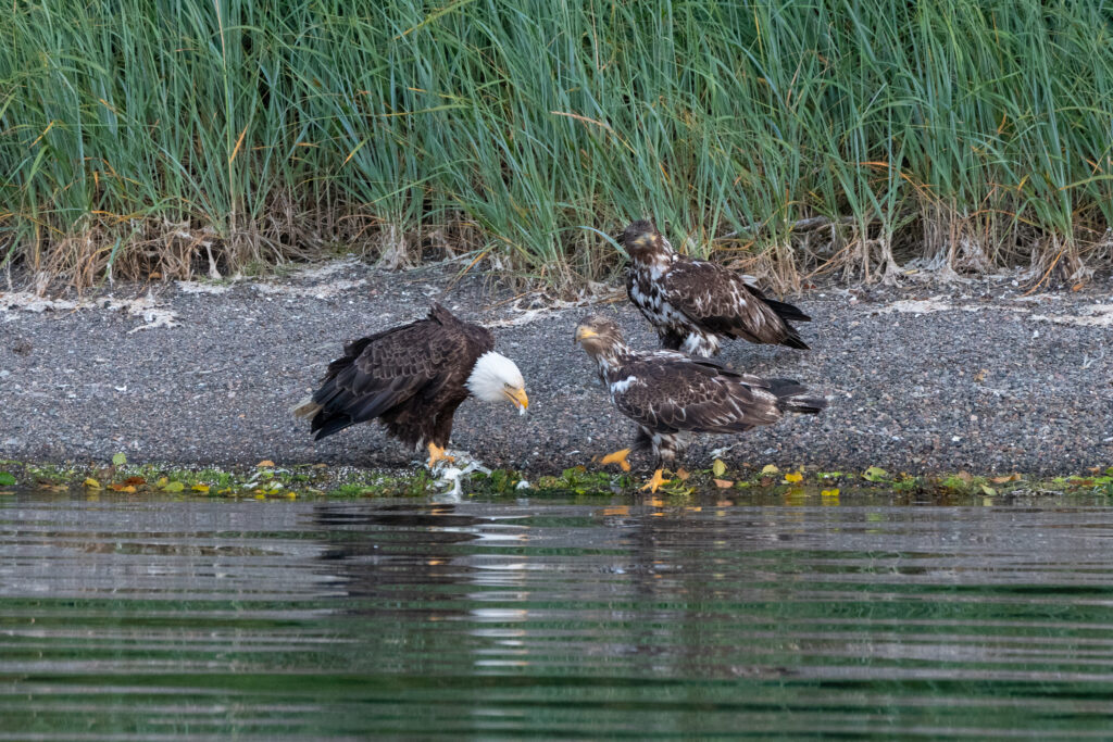 We stayed for two nights at the dock, resting up from the overnight sail, getting what few replacement groceries the General Store offered, and figuring out our next moves and the upcoming weather. Winter Harbour has some very easy sea otter viewing, with rafts of 50+ gathering in the evenings, and some solo otters even coming near the docks. Bald eagles, crows, turkey vultures, and gulls feast on the scraps of fish tossed in the water from the filleting stations on the docks, gathering on the shore at low tide and bickering over the scraps that have washed up. Shorebirds and Belted Kingfishers fly around, calling to each other.