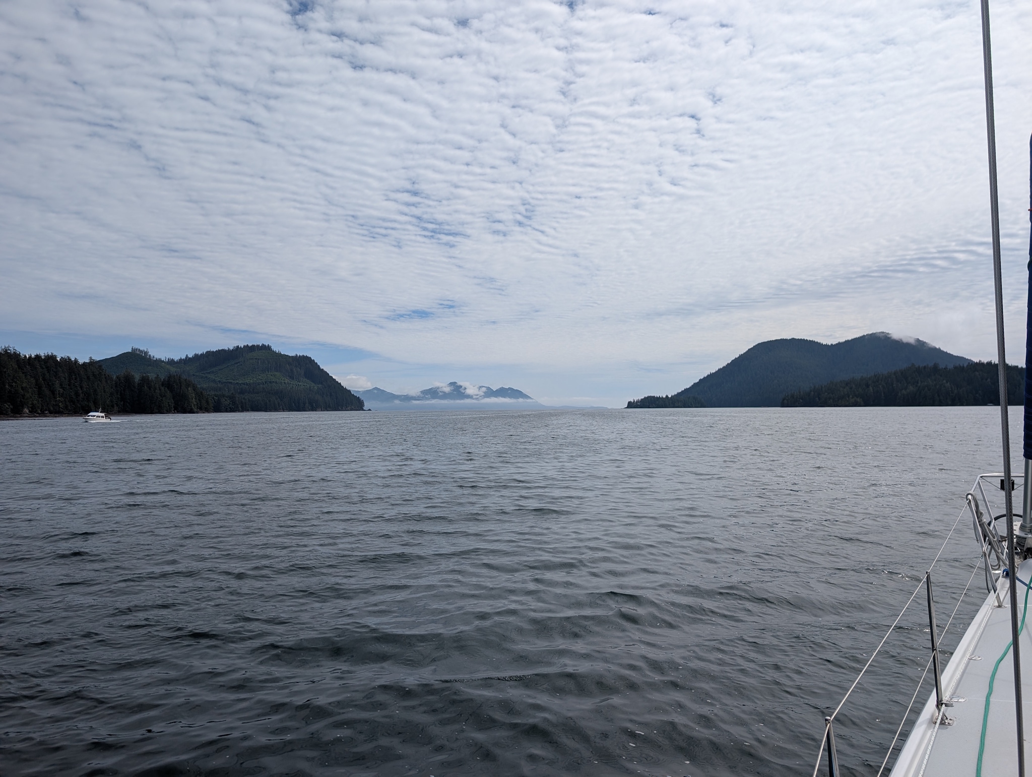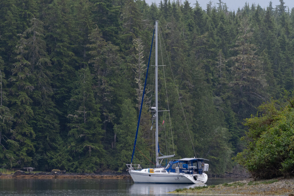 Winter Harbour is not a town in any sense, but it might well be considered a village during the summer months. What used to be a fishing and whaling station is now a series of docks and fishing resorts. RVs pack the place, with some having permanent (or perhaps semi-permanent) structures built around the RVs, all people who are there at least half the year, I was told. There were few other sailboats around while we were there, with two others at the government wharf, while we stayed at the Outpost at Winter Harbour’s dock, which in the evenings was mostly full, and during the day mostly empty. All small (trailerable, for the most part) fishing boats with big outboard engines. Some charters, but most of them owned by people staying in the RVs or the various cabins in the area, and all coming back each day with ice chests full of huge fish: salmon, lingcod, halibut, and various rockfish. Fish much bigger than we are even set up to catch, and it made me realize I need to spend some money on larger rods & reels, especially if we start going after pelagic fish offshore eventually. Maybe in Tofino.