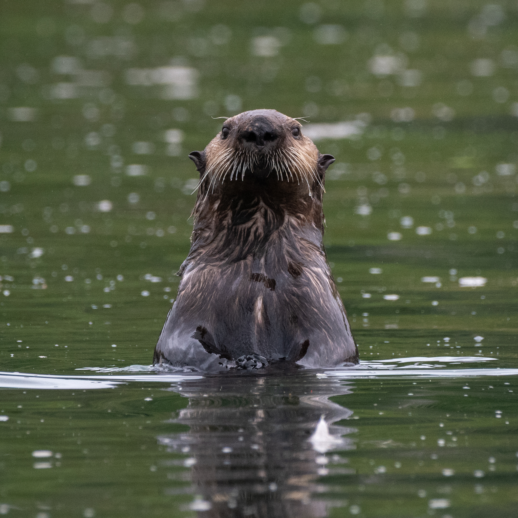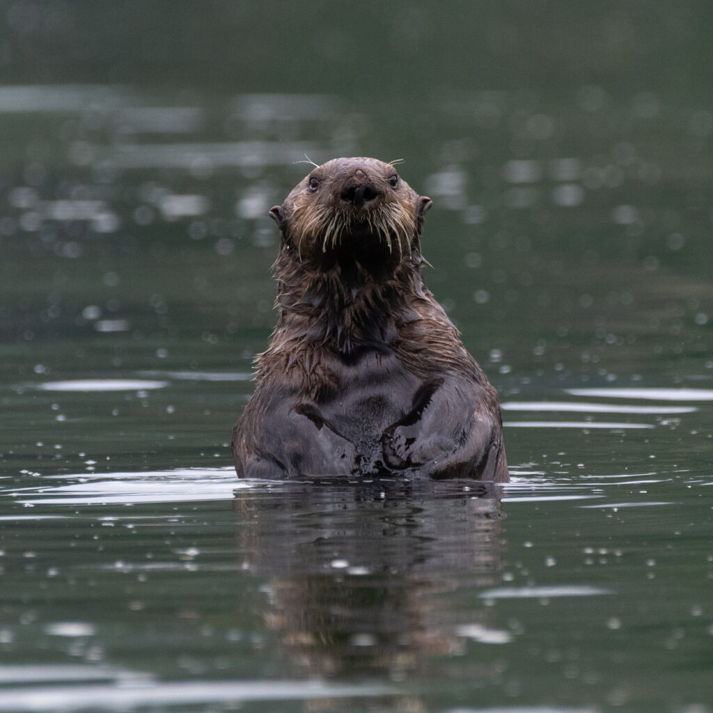 With the prediction of strong southerly winds off the coast on Tuesday we stayed put in the shelter of Quatsino Sound, and in the middle of the day took the dinghy out to go watch sea otters. We were not disappointed, with curious otters watching and sometimes even coming closer to us to get a better look.